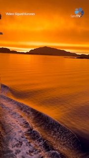 Sigurd Korsnes opplevde solnedgangen og regnbogen samtidig på under ein ferjetur. Kan det bli finare enn dette, spør han. Video: Sigurd Korsnes